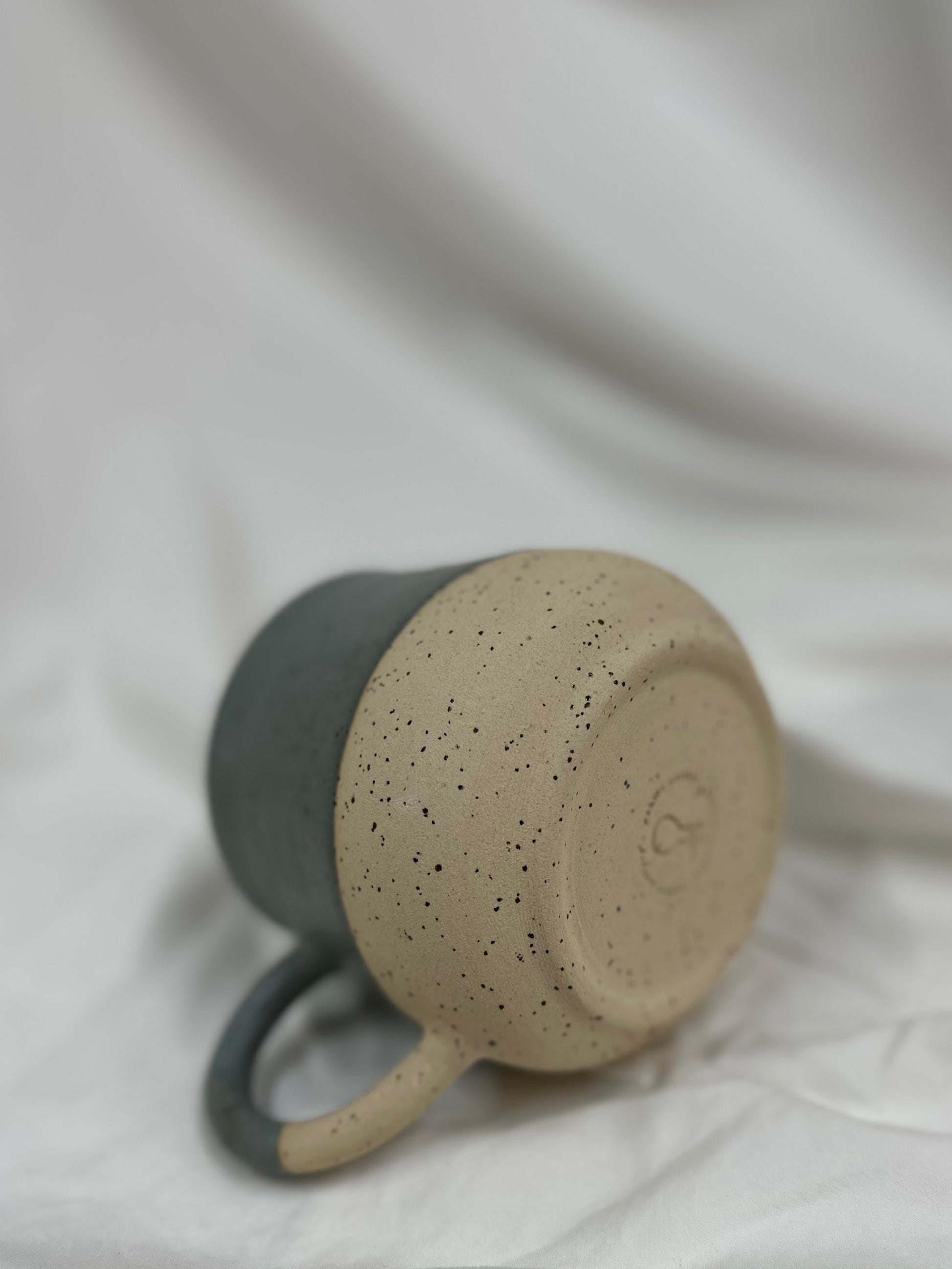 Hand thrown using a speckled clay & hand painted in a mat blue